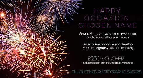Gift vouchers may be redeemed against any of our workshops, safaris, 1-2-1 sessions or fine art prints